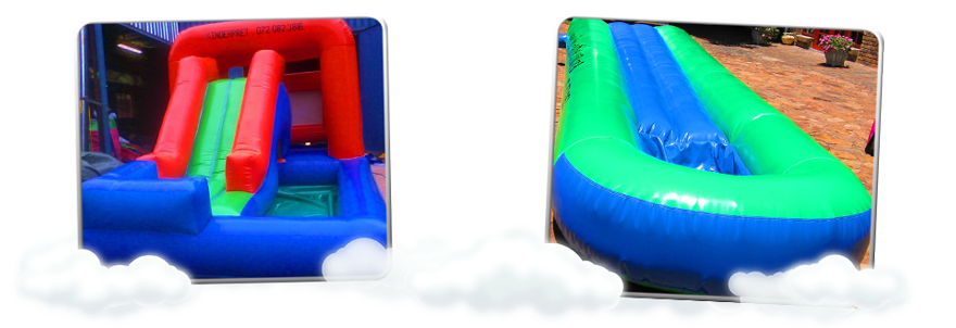 At Rinies Jumping castles in Pretoria we offer an exciting variety of brightly coloured outdoor Kiddies Jumping Castle bouncers and waterslides for sale that are manufactured to meet the highest quality standards. All the wearing seams are reinforced with protection strips and double stitching to last even with the roughest and toughest kids.